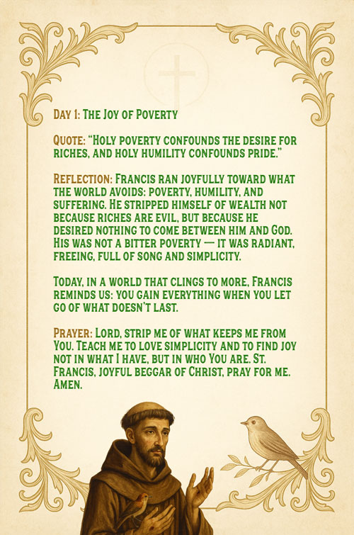 Reflection: St. Francis reminds us that our lives can speak of Christ even more powerfully than our words. How can you witness to love, peace, and compassion today without saying a word?