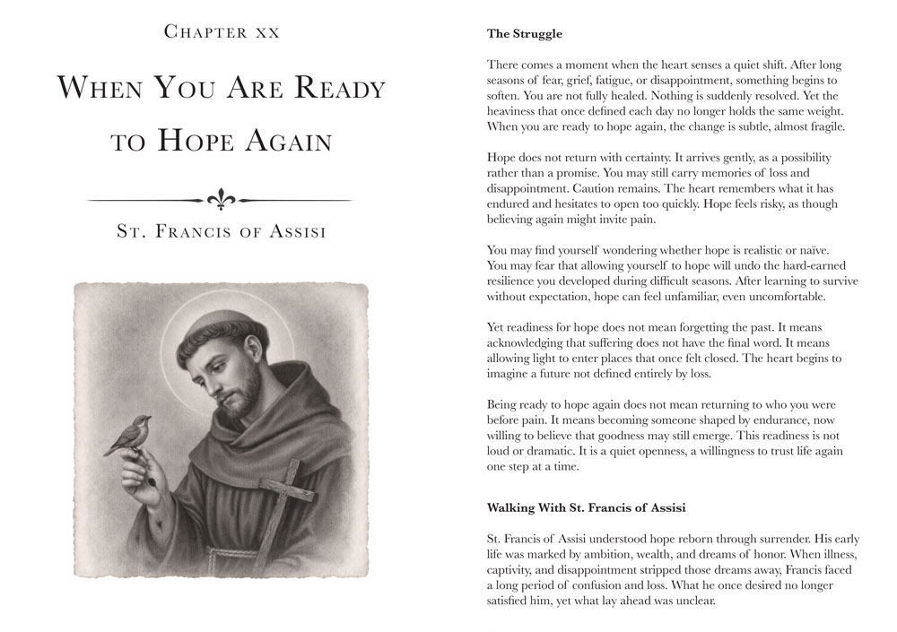 This book gathers twenty saints who knew suffering personally — illness, grief, spiritual dryness, delay, misunderstanding, fear, and uncertainty. They did not avoid hardship. They remained faithful within it.